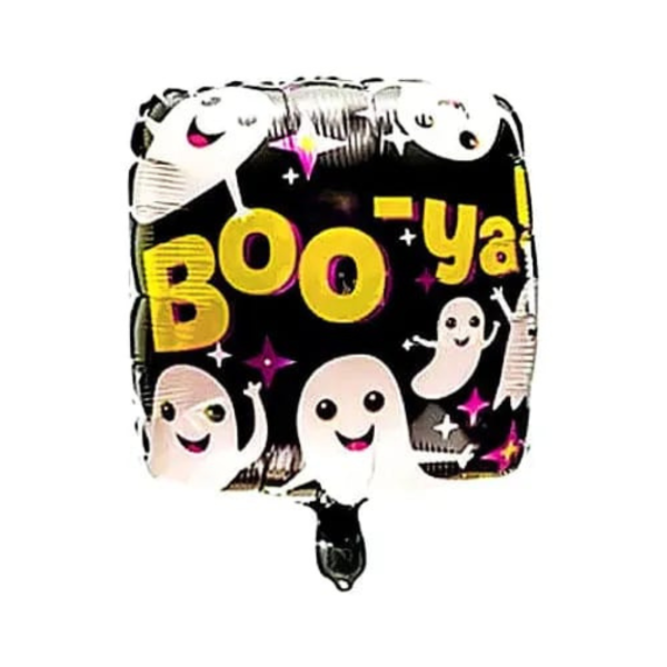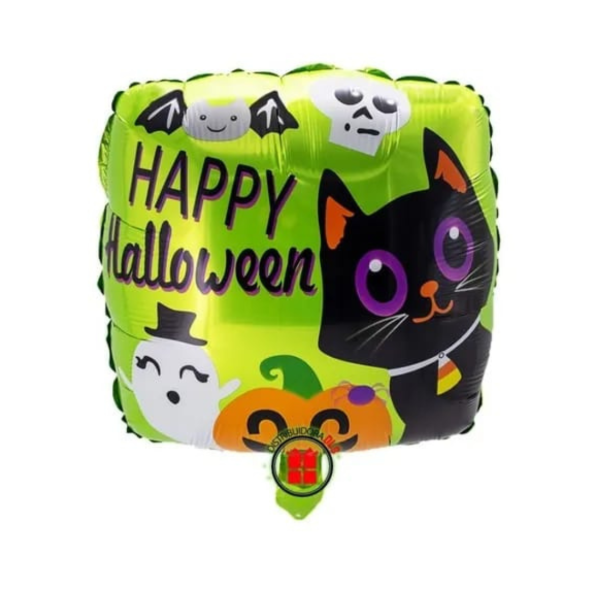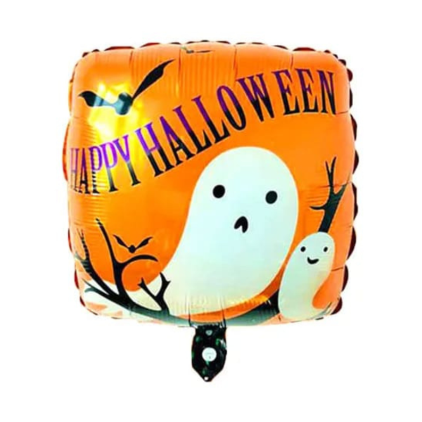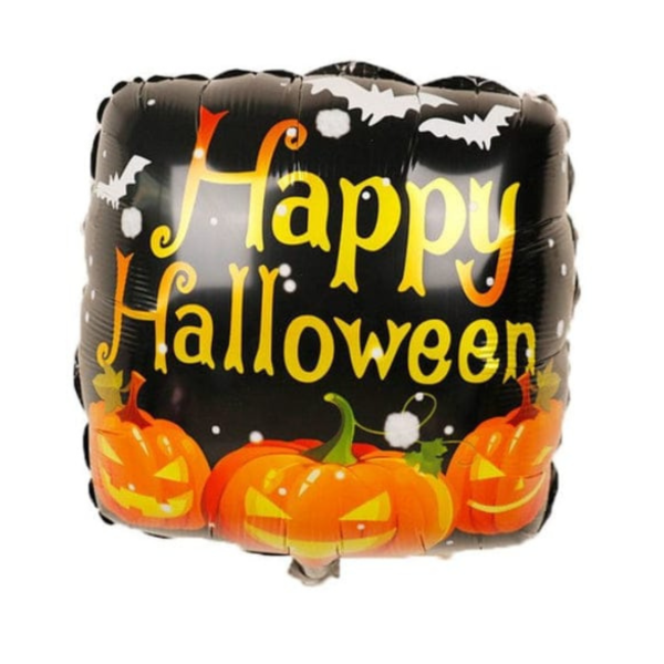 Globos metalizados cuadrados "HAPPY HALLOWEEN" (30x30cm)